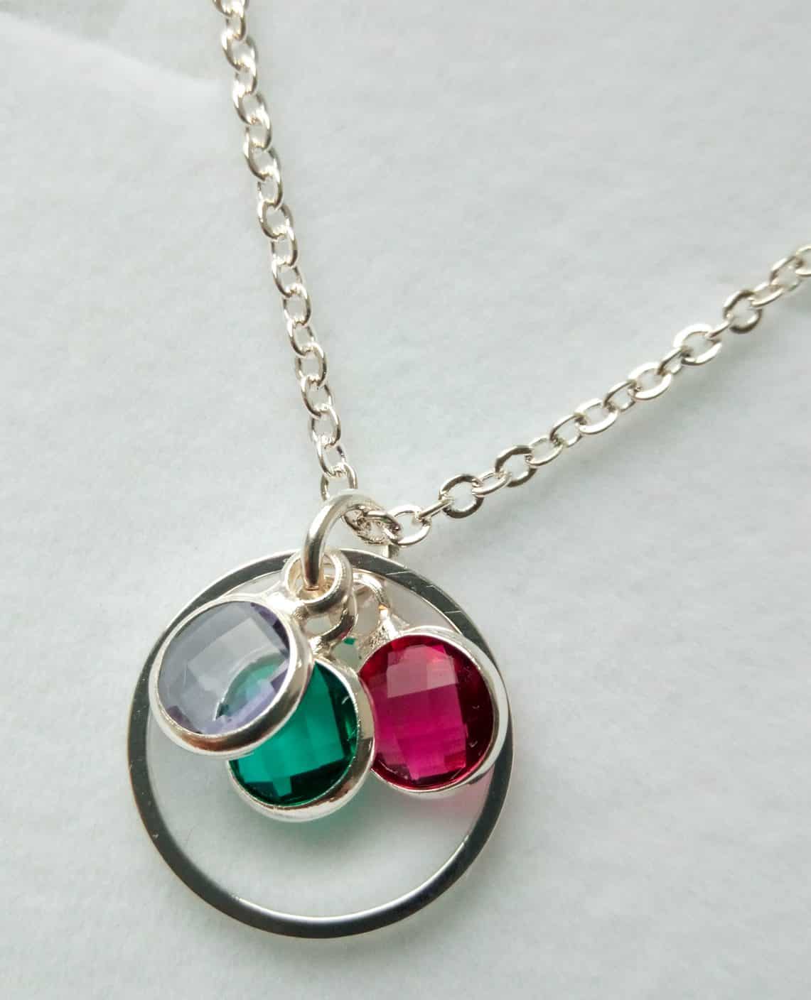 - The three mini Swarovski crystal birthstones are perfect for representing family or loved ones. I chose stones for my siblings and me, who are all living our lives in different locations making this necklace a perfect way of keeping us all together, close to our mom.